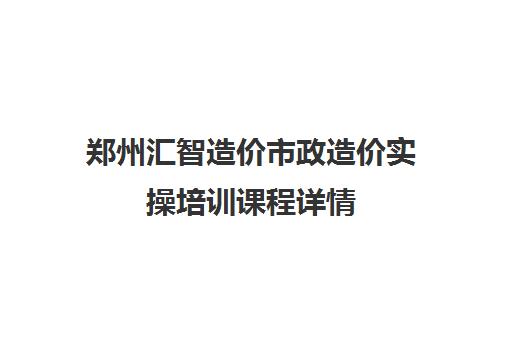 郑州汇智造价市政造价实操培训课程详情
